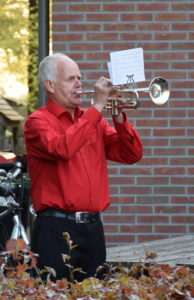 Op de parkeerplaats voor de kerk, werd de 2 minuten stilte in acht genomen en werd de Last Post geblazen door Jan Huizing van Harmonie Orkest Noordenveld.